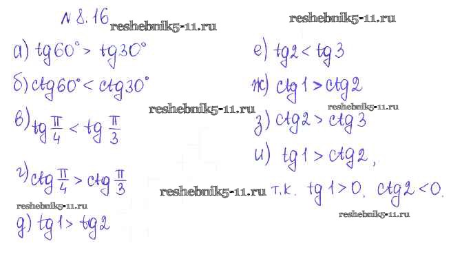 Готовая домашняя работа с ответами по Алгебре за 10 класс Никольский, Потапов, Решетников, Шевкин Учебник МГУ - школе Базовый и углубленный уровень Просвещение 2015 ФГОС - §8. Тангес и катангес угла 16