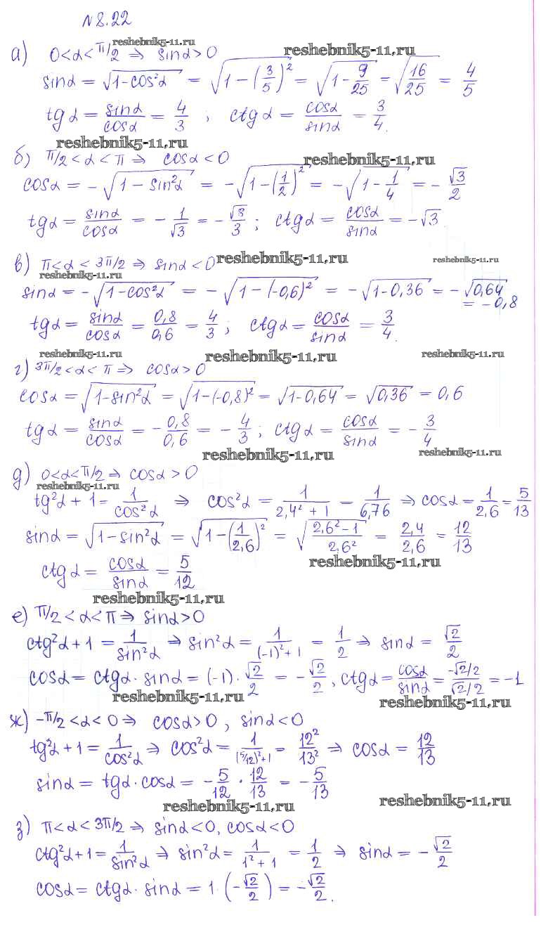 Готовая домашняя работа с ответами по Алгебре за 10 класс Никольский, Потапов, Решетников, Шевкин Учебник МГУ - школе Базовый и углубленный уровень Просвещение 2015 ФГОС - §8. Тангес и катангес угла 22