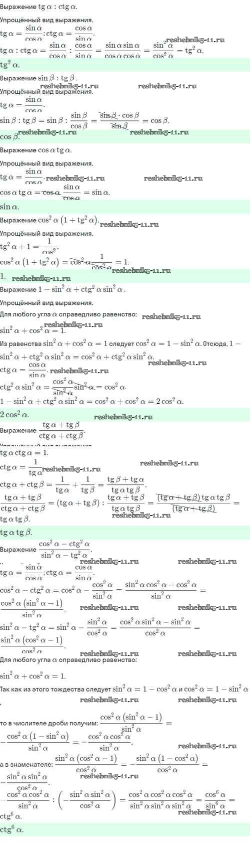 Готовая домашняя работа с ответами по Алгебре за 10 класс Никольский, Потапов, Решетников, Шевкин Учебник МГУ - школе Базовый и углубленный уровень Просвещение 2015 ФГОС - §8. Тангес и катангес угла 8.24