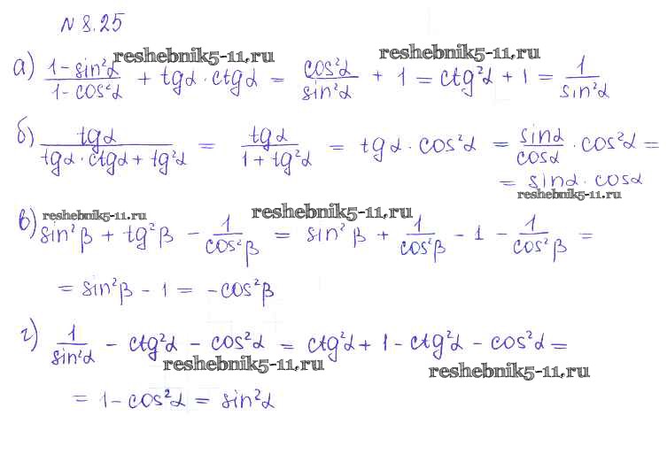 Готовая домашняя работа с ответами по Алгебре за 10 класс Никольский, Потапов, Решетников, Шевкин Учебник МГУ - школе Базовый и углубленный уровень Просвещение 2015 ФГОС - §8. Тангес и катангес угла 25