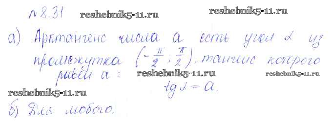 Готовая домашняя работа с ответами по Алгебре за 10 класс Никольский, Потапов, Решетников, Шевкин Учебник МГУ - школе Базовый и углубленный уровень Просвещение 2015 ФГОС - §8. Тангес и катангес угла 31