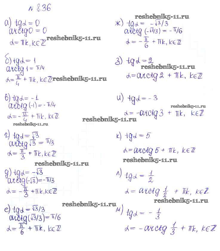 Готовая домашняя работа с ответами по Алгебре за 10 класс Никольский, Потапов, Решетников, Шевкин Учебник МГУ - школе Базовый и углубленный уровень Просвещение 2015 ФГОС - §8. Тангес и катангес угла 36
