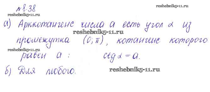 Готовая домашняя работа с ответами по Алгебре за 10 класс Никольский, Потапов, Решетников, Шевкин Учебник МГУ - школе Базовый и углубленный уровень Просвещение 2015 ФГОС - §8. Тангес и катангес угла 38