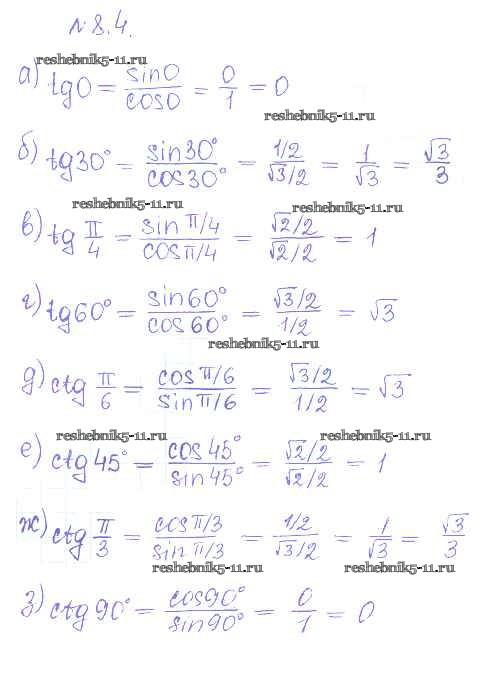 Готовая домашняя работа с ответами по Алгебре за 10 класс Никольский, Потапов, Решетников, Шевкин Учебник МГУ - школе Базовый и углубленный уровень Просвещение 2015 ФГОС - §8. Тангес и катангес угла 4
