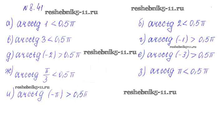 Готовая домашняя работа с ответами по Алгебре за 10 класс Никольский, Потапов, Решетников, Шевкин Учебник МГУ - школе Базовый и углубленный уровень Просвещение 2015 ФГОС - §8. Тангес и катангес угла 41