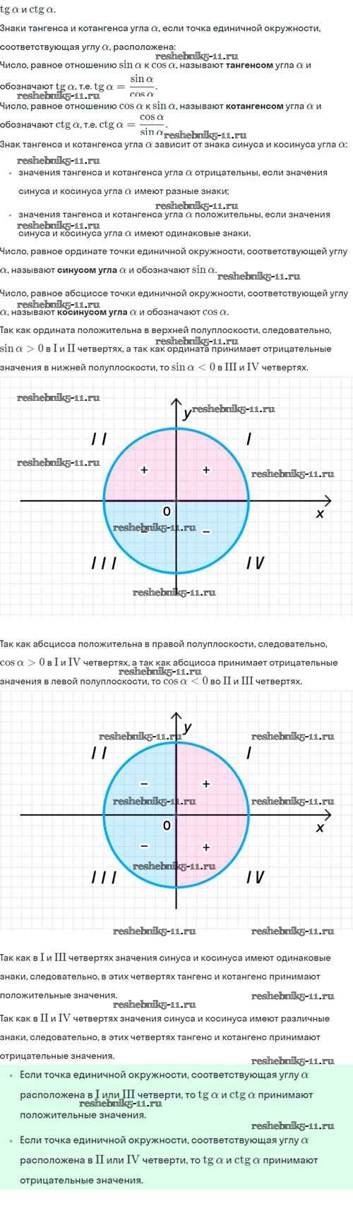 Готовая домашняя работа с ответами по Алгебре за 10 класс Никольский, Потапов, Решетников, Шевкин Учебник МГУ - школе Базовый и углубленный уровень Просвещение 2015 ФГОС - §8. Тангес и катангес угла 8.7