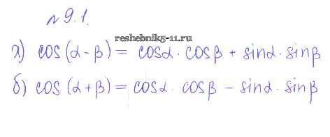Готовая домашняя работа с ответами по Алгебре за 10 класс Никольский, Потапов, Решетников, Шевкин Учебник МГУ - школе Базовый и углубленный уровень Просвещение 2015 ФГОС - §9. Формулы сложения 1