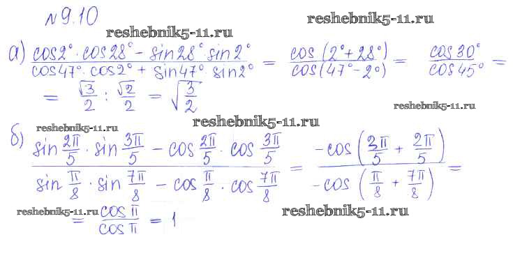 Готовая домашняя работа с ответами по Алгебре за 10 класс Никольский, Потапов, Решетников, Шевкин Учебник МГУ - школе Базовый и углубленный уровень Просвещение 2015 ФГОС - §9. Формулы сложения 10