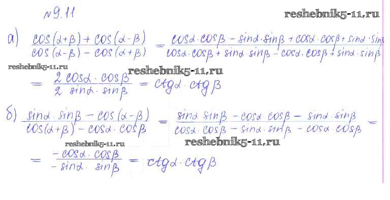 Готовая домашняя работа с ответами по Алгебре за 10 класс Никольский, Потапов, Решетников, Шевкин Учебник МГУ - школе Базовый и углубленный уровень Просвещение 2015 ФГОС - §9. Формулы сложения 11