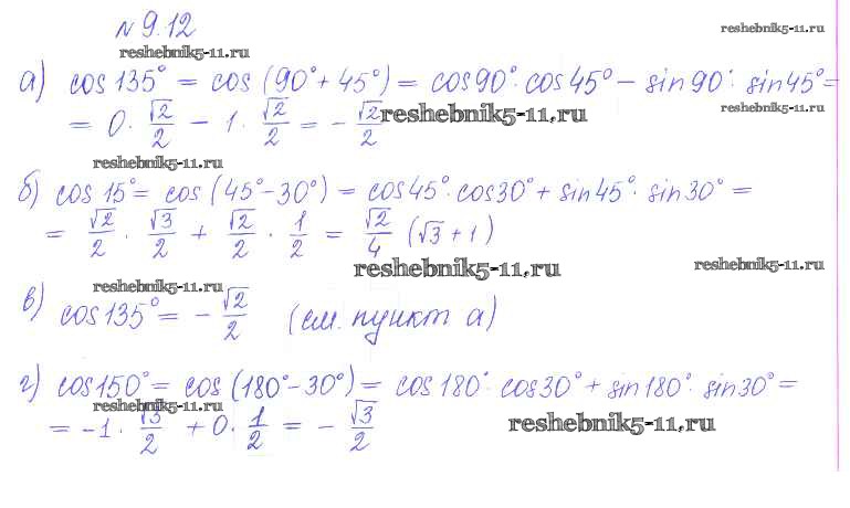 Готовая домашняя работа с ответами по Алгебре за 10 класс Никольский, Потапов, Решетников, Шевкин Учебник МГУ - школе Базовый и углубленный уровень Просвещение 2015 ФГОС - §9. Формулы сложения 12