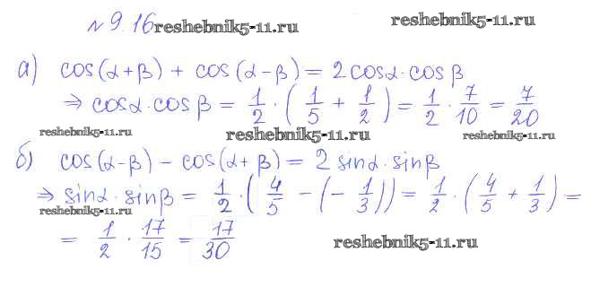 Готовая домашняя работа с ответами по Алгебре за 10 класс Никольский, Потапов, Решетников, Шевкин Учебник МГУ - школе Базовый и углубленный уровень Просвещение 2015 ФГОС - §9. Формулы сложения 16