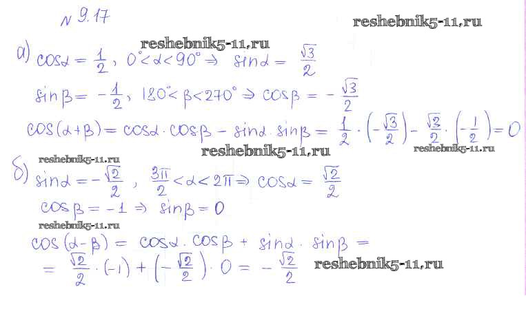 Готовая домашняя работа с ответами по Алгебре за 10 класс Никольский, Потапов, Решетников, Шевкин Учебник МГУ - школе Базовый и углубленный уровень Просвещение 2015 ФГОС - §9. Формулы сложения 17