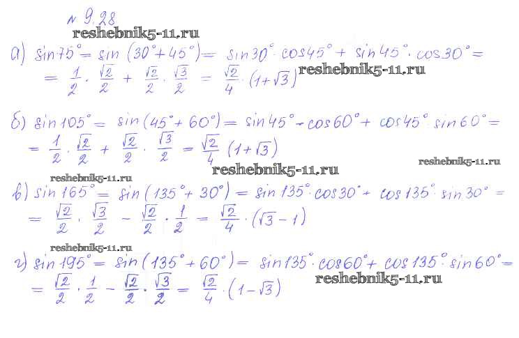 Готовая домашняя работа с ответами по Алгебре за 10 класс Никольский, Потапов, Решетников, Шевкин Учебник МГУ - школе Базовый и углубленный уровень Просвещение 2015 ФГОС - §9. Формулы сложения 28