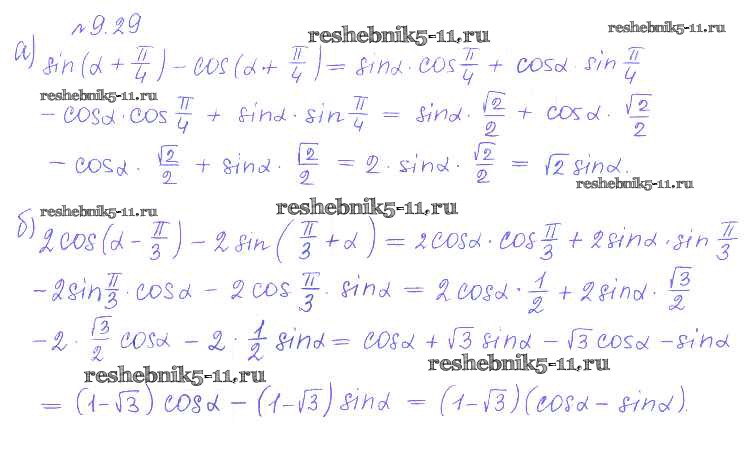 Готовая домашняя работа с ответами по Алгебре за 10 класс Никольский, Потапов, Решетников, Шевкин Учебник МГУ - школе Базовый и углубленный уровень Просвещение 2015 ФГОС - §9. Формулы сложения 29