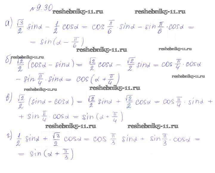 Готовая домашняя работа с ответами по Алгебре за 10 класс Никольский, Потапов, Решетников, Шевкин Учебник МГУ - школе Базовый и углубленный уровень Просвещение 2015 ФГОС - §9. Формулы сложения 30
