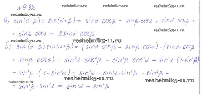 Готовая домашняя работа с ответами по Алгебре за 10 класс Никольский, Потапов, Решетников, Шевкин Учебник МГУ - школе Базовый и углубленный уровень Просвещение 2015 ФГОС - §9. Формулы сложения 32