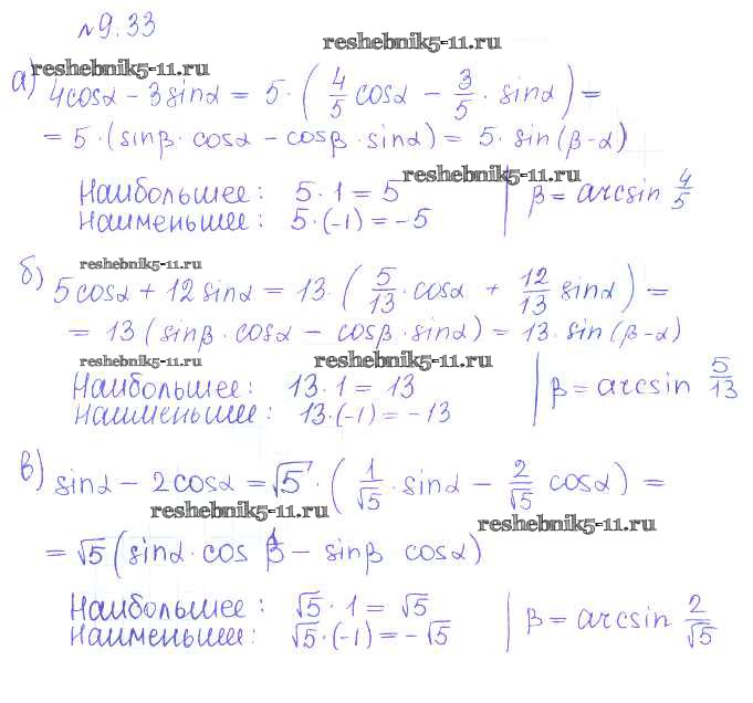 Готовая домашняя работа с ответами по Алгебре за 10 класс Никольский, Потапов, Решетников, Шевкин Учебник МГУ - школе Базовый и углубленный уровень Просвещение 2015 ФГОС - §9. Формулы сложения 33