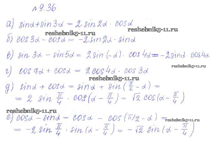Готовая домашняя работа с ответами по Алгебре за 10 класс Никольский, Потапов, Решетников, Шевкин Учебник МГУ - школе Базовый и углубленный уровень Просвещение 2015 ФГОС - §9. Формулы сложения 36