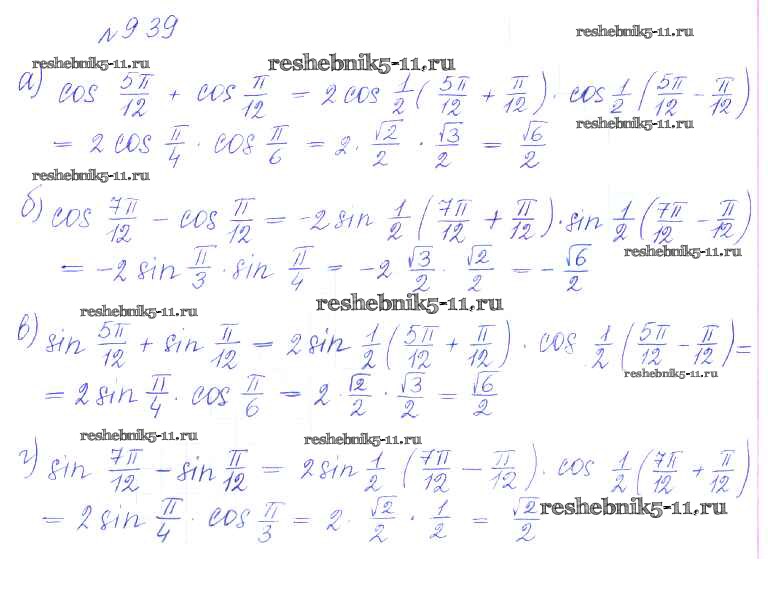 Готовая домашняя работа с ответами по Алгебре за 10 класс Никольский, Потапов, Решетников, Шевкин Учебник МГУ - школе Базовый и углубленный уровень Просвещение 2015 ФГОС - §9. Формулы сложения 39
