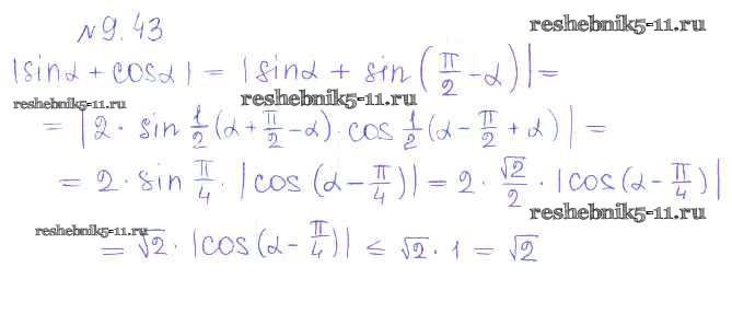 Готовая домашняя работа с ответами по Алгебре за 10 класс Никольский, Потапов, Решетников, Шевкин Учебник МГУ - школе Базовый и углубленный уровень Просвещение 2015 ФГОС - §9. Формулы сложения 43