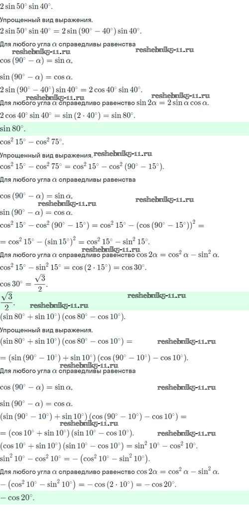 Готовая домашняя работа с ответами по Алгебре за 10 класс Никольский, Потапов, Решетников, Шевкин Учебник МГУ - школе Базовый и углубленный уровень Просвещение 2015 ФГОС - §9. Формулы сложения 9.50