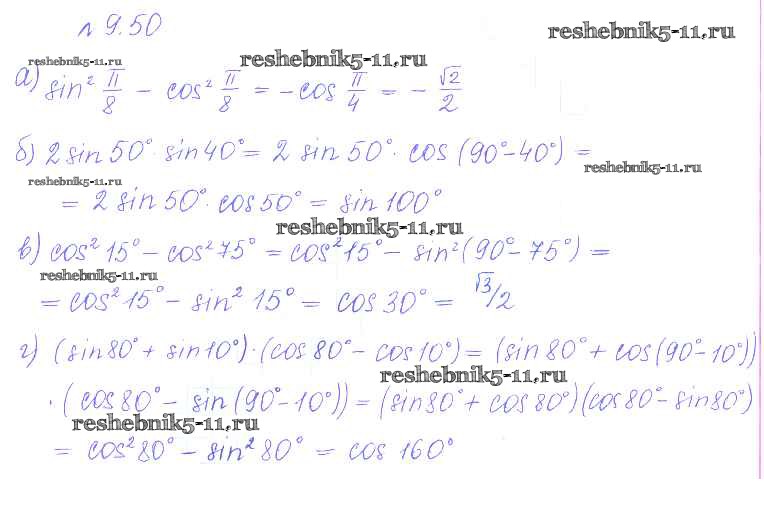 Готовая домашняя работа с ответами по Алгебре за 10 класс Никольский, Потапов, Решетников, Шевкин Учебник МГУ - школе Базовый и углубленный уровень Просвещение 2015 ФГОС - §9. Формулы сложения 50