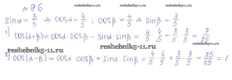 Готовая домашняя работа с ответами по Алгебре за 10 класс Никольский, Потапов, Решетников, Шевкин Учебник МГУ - школе Базовый и углубленный уровень Просвещение 2015 ФГОС - §9. Формулы сложения 6