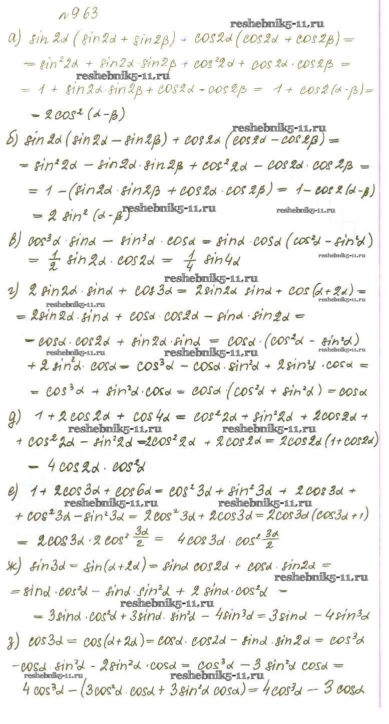 Готовая домашняя работа с ответами по Алгебре за 10 класс Никольский, Потапов, Решетников, Шевкин Учебник МГУ - школе Базовый и углубленный уровень Просвещение 2015 ФГОС - §9. Формулы сложения 63