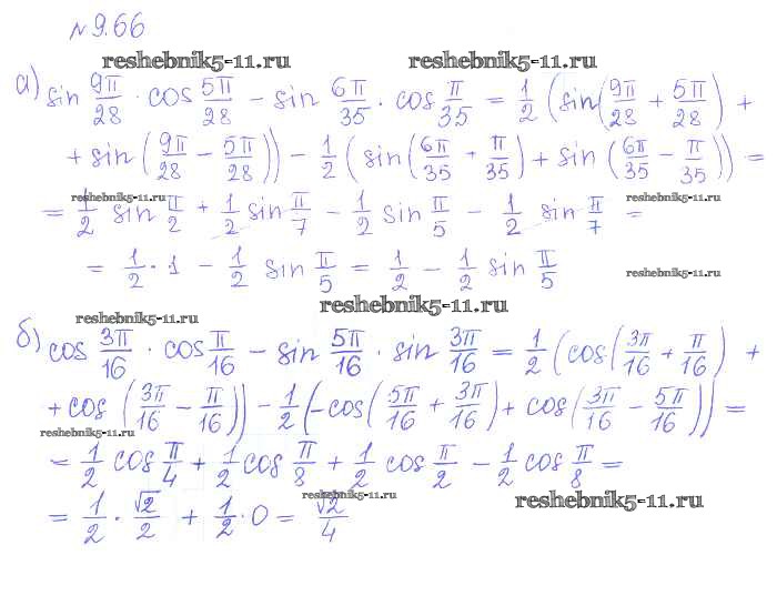 Готовая домашняя работа с ответами по Алгебре за 10 класс Никольский, Потапов, Решетников, Шевкин Учебник МГУ - школе Базовый и углубленный уровень Просвещение 2015 ФГОС - §9. Формулы сложения 66