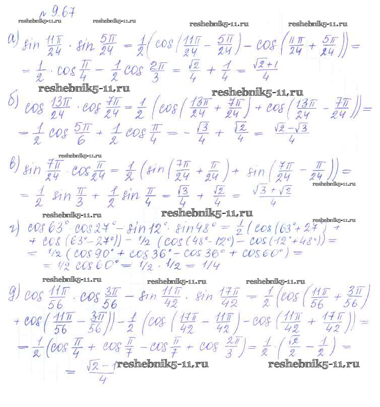 Готовая домашняя работа с ответами по Алгебре за 10 класс Никольский, Потапов, Решетников, Шевкин Учебник МГУ - школе Базовый и углубленный уровень Просвещение 2015 ФГОС - §9. Формулы сложения 67