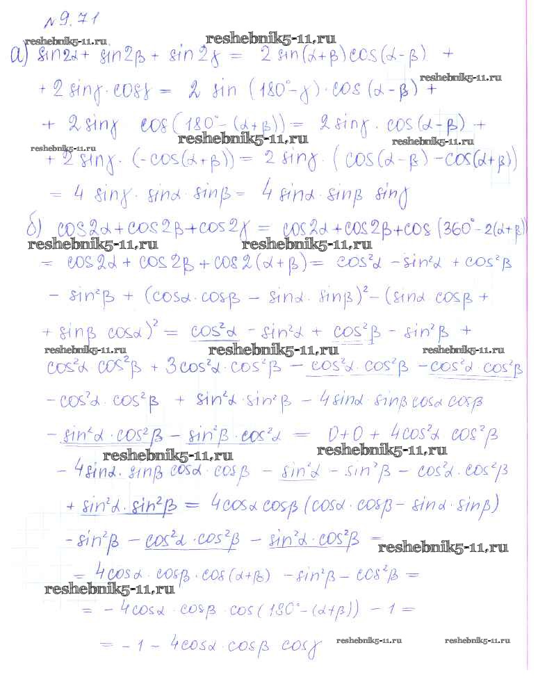 Готовая домашняя работа с ответами по Алгебре за 10 класс Никольский, Потапов, Решетников, Шевкин Учебник МГУ - школе Базовый и углубленный уровень Просвещение 2015 ФГОС - §9. Формулы сложения 71