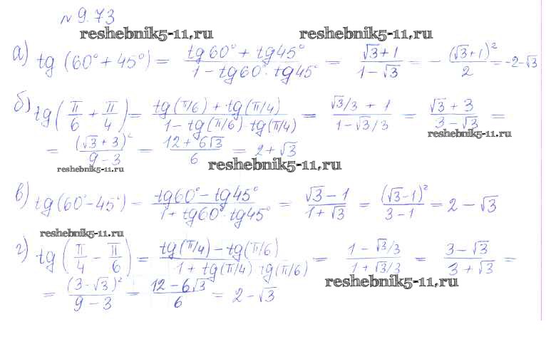 Готовая домашняя работа с ответами по Алгебре за 10 класс Никольский, Потапов, Решетников, Шевкин Учебник МГУ - школе Базовый и углубленный уровень Просвещение 2015 ФГОС - §9. Формулы сложения 73