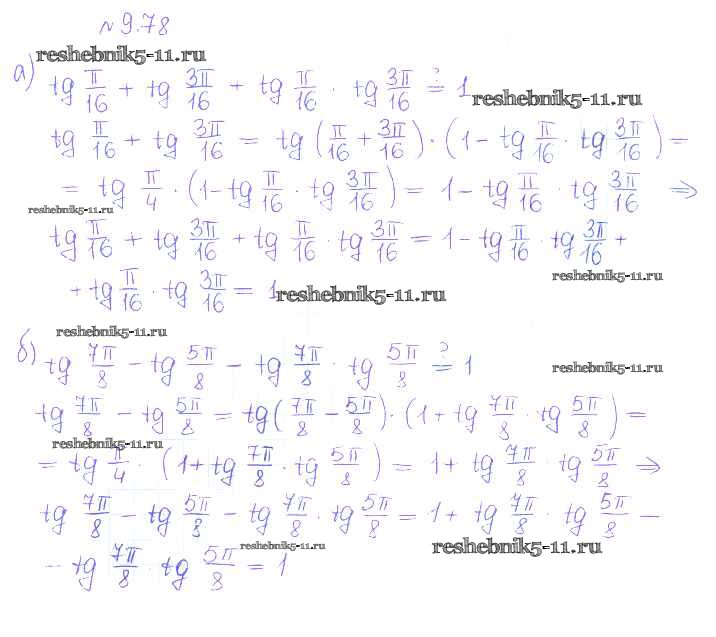 Готовая домашняя работа с ответами по Алгебре за 10 класс Никольский, Потапов, Решетников, Шевкин Учебник МГУ - школе Базовый и углубленный уровень Просвещение 2015 ФГОС - §9. Формулы сложения 78