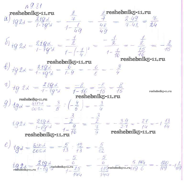 Готовая домашняя работа с ответами по Алгебре за 10 класс Никольский, Потапов, Решетников, Шевкин Учебник МГУ - школе Базовый и углубленный уровень Просвещение 2015 ФГОС - §9. Формулы сложения 81