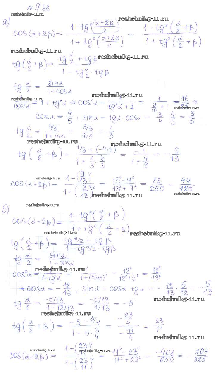 Готовая домашняя работа с ответами по Алгебре за 10 класс Никольский, Потапов, Решетников, Шевкин Учебник МГУ - школе Базовый и углубленный уровень Просвещение 2015 ФГОС - §9. Формулы сложения 88