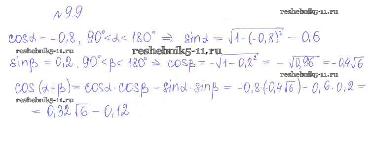 Готовая домашняя работа с ответами по Алгебре за 10 класс Никольский, Потапов, Решетников, Шевкин Учебник МГУ - школе Базовый и углубленный уровень Просвещение 2015 ФГОС - §9. Формулы сложения 9