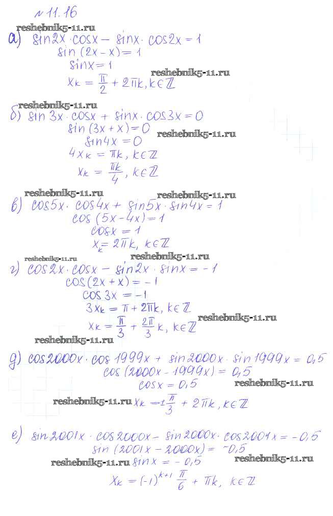 Готовая домашняя работа с ответами по Алгебре за 10 класс Никольский, Потапов, Решетников, Шевкин Учебник МГУ - школе Базовый и углубленный уровень Просвещение 2015 ФГОС - §11. Тригонометрические уравнения и неравенства 16