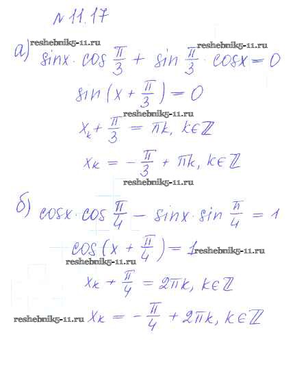 Готовая домашняя работа с ответами по Алгебре за 10 класс Никольский, Потапов, Решетников, Шевкин Учебник МГУ - школе Базовый и углубленный уровень Просвещение 2015 ФГОС - §11. Тригонометрические уравнения и неравенства 17