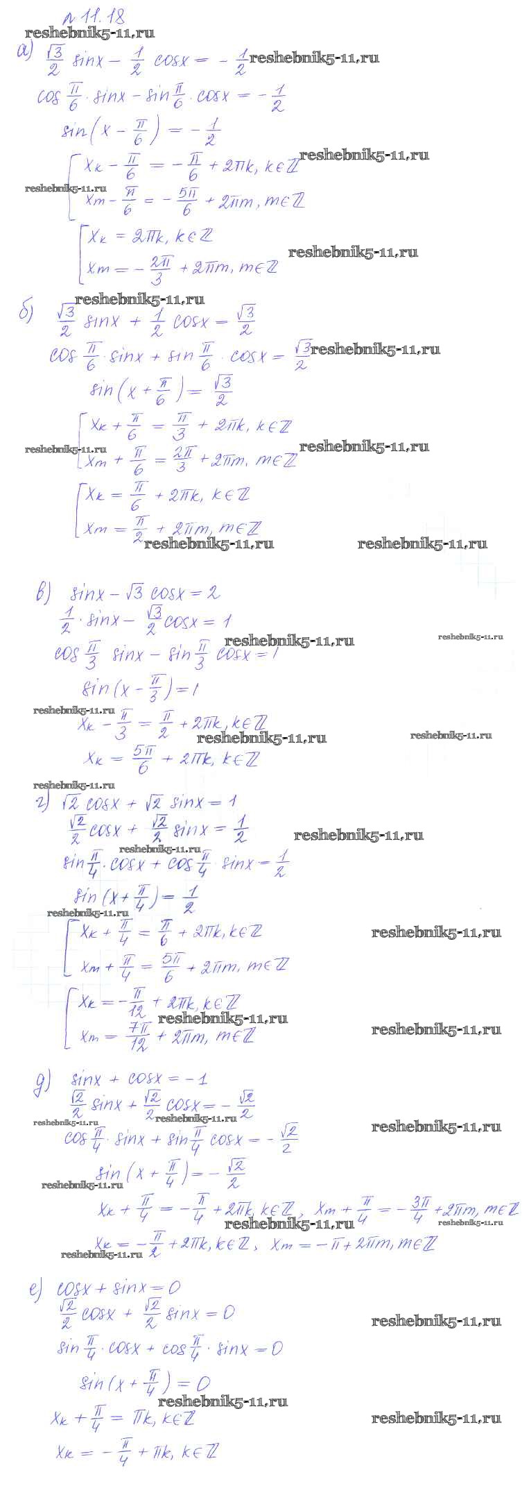 Готовая домашняя работа с ответами по Алгебре за 10 класс Никольский, Потапов, Решетников, Шевкин Учебник МГУ - школе Базовый и углубленный уровень Просвещение 2015 ФГОС - §11. Тригонометрические уравнения и неравенства 18