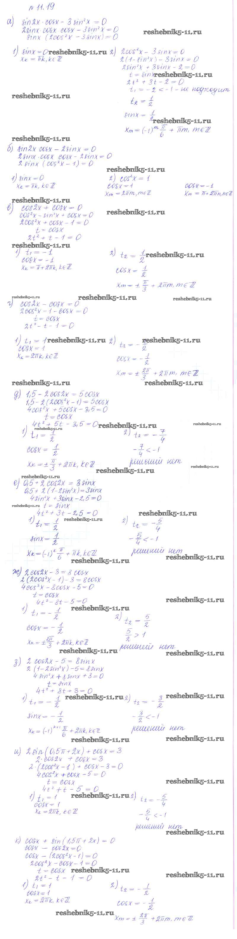 Готовая домашняя работа с ответами по Алгебре за 10 класс Никольский, Потапов, Решетников, Шевкин Учебник МГУ - школе Базовый и углубленный уровень Просвещение 2015 ФГОС - §11. Тригонометрические уравнения и неравенства 19