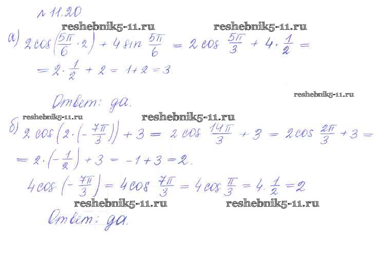 Готовая домашняя работа с ответами по Алгебре за 10 класс Никольский, Потапов, Решетников, Шевкин Учебник МГУ - школе Базовый и углубленный уровень Просвещение 2015 ФГОС - §11. Тригонометрические уравнения и неравенства 20