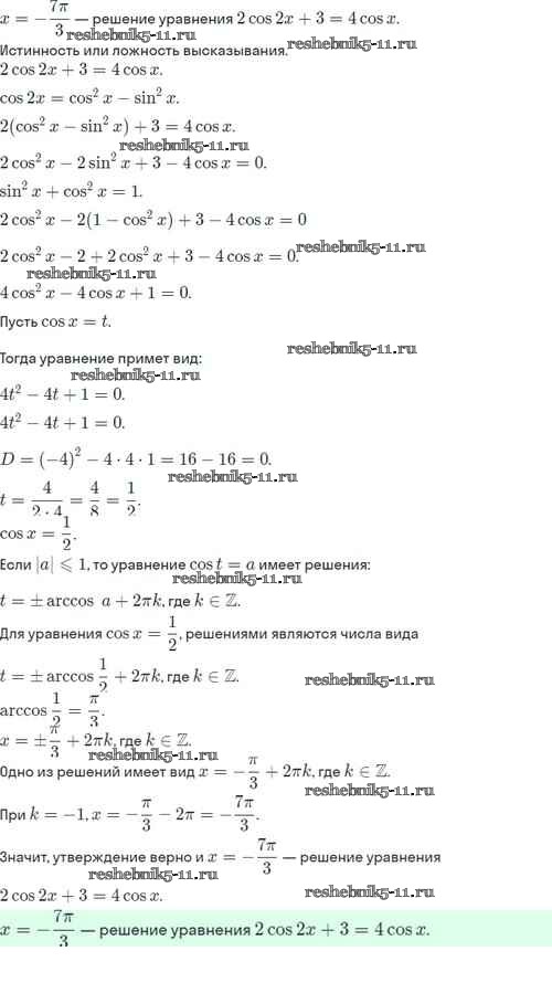 Готовая домашняя работа с ответами по Алгебре за 10 класс Никольский, Потапов, Решетников, Шевкин Учебник МГУ - школе Базовый и углубленный уровень Просвещение 2015 ФГОС - §11. Тригонометрические уравнения и неравенства 11.20