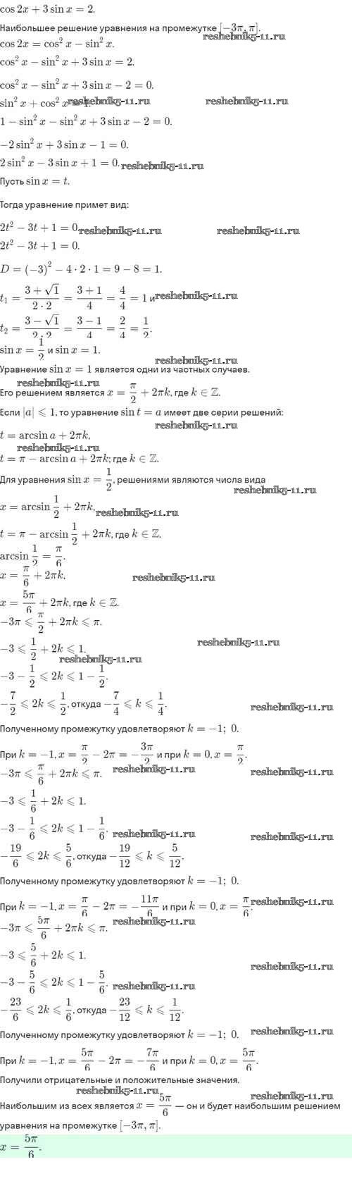 Готовая домашняя работа с ответами по Алгебре за 10 класс Никольский, Потапов, Решетников, Шевкин Учебник МГУ - школе Базовый и углубленный уровень Просвещение 2015 ФГОС - §11. Тригонометрические уравнения и неравенства 11.22