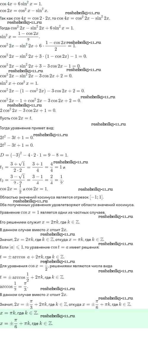 Готовая домашняя работа с ответами по Алгебре за 10 класс Никольский, Потапов, Решетников, Шевкин Учебник МГУ - школе Базовый и углубленный уровень Просвещение 2015 ФГОС - §11. Тригонометрические уравнения и неравенства 11.23