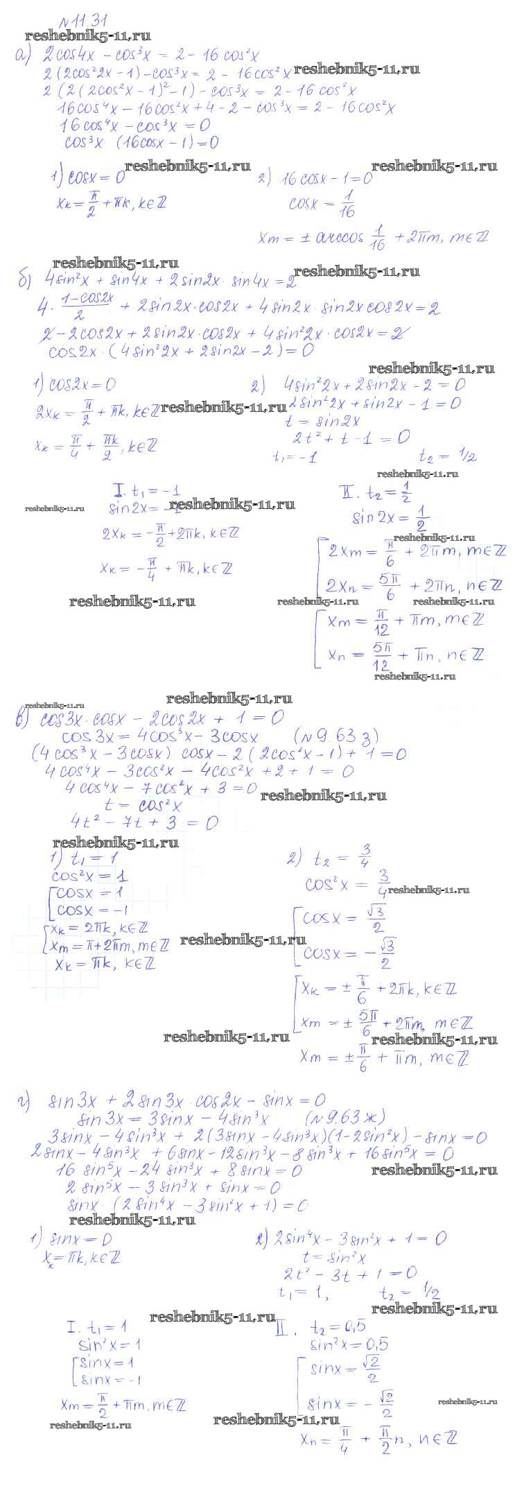 Готовая домашняя работа с ответами по Алгебре за 10 класс Никольский, Потапов, Решетников, Шевкин Учебник МГУ - школе Базовый и углубленный уровень Просвещение 2015 ФГОС - §11. Тригонометрические уравнения и неравенства 31