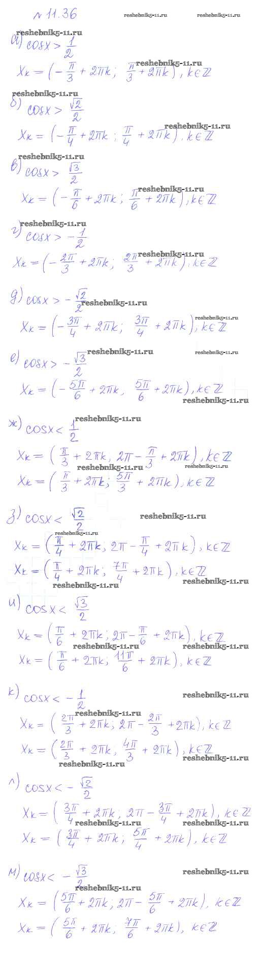 Готовая домашняя работа с ответами по Алгебре за 10 класс Никольский, Потапов, Решетников, Шевкин Учебник МГУ - школе Базовый и углубленный уровень Просвещение 2015 ФГОС - §11. Тригонометрические уравнения и неравенства 36