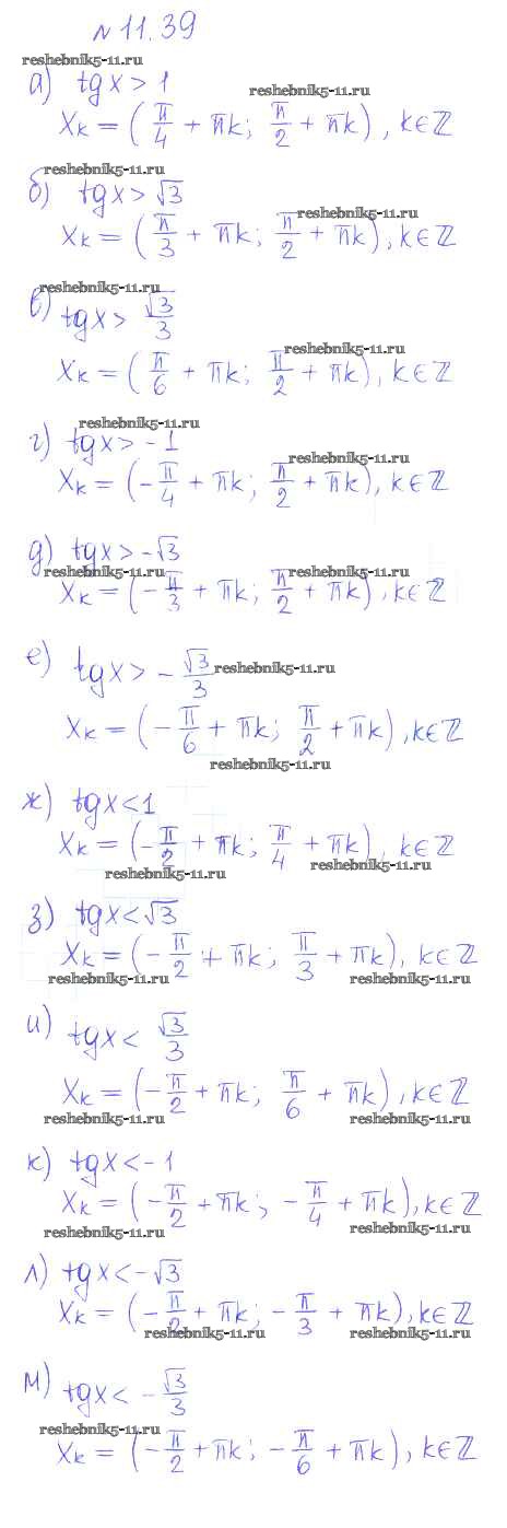 Готовая домашняя работа с ответами по Алгебре за 10 класс Никольский, Потапов, Решетников, Шевкин Учебник МГУ - школе Базовый и углубленный уровень Просвещение 2015 ФГОС - §11. Тригонометрические уравнения и неравенства 39
