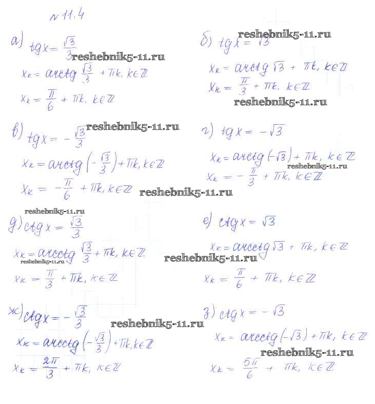 Готовая домашняя работа с ответами по Алгебре за 10 класс Никольский, Потапов, Решетников, Шевкин Учебник МГУ - школе Базовый и углубленный уровень Просвещение 2015 ФГОС - §11. Тригонометрические уравнения и неравенства 4