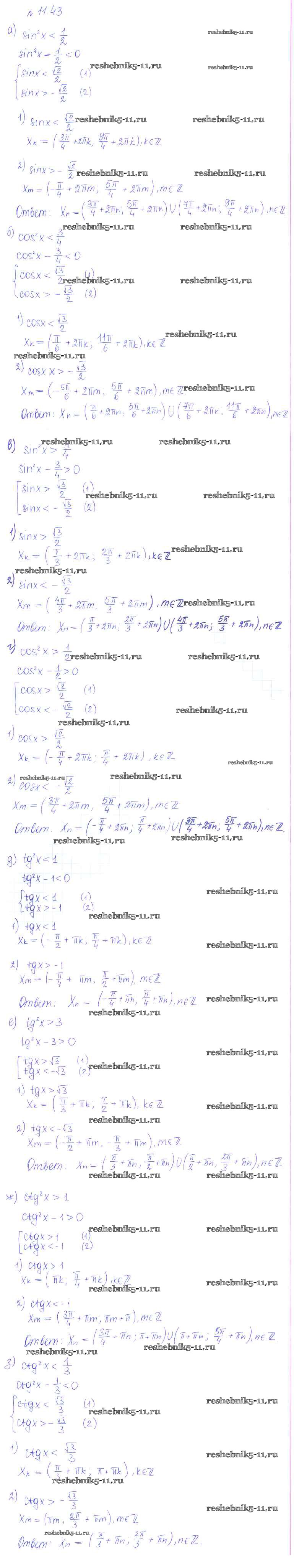 Готовая домашняя работа с ответами по Алгебре за 10 класс Никольский, Потапов, Решетников, Шевкин Учебник МГУ - школе Базовый и углубленный уровень Просвещение 2015 ФГОС - §11. Тригонометрические уравнения и неравенства 43