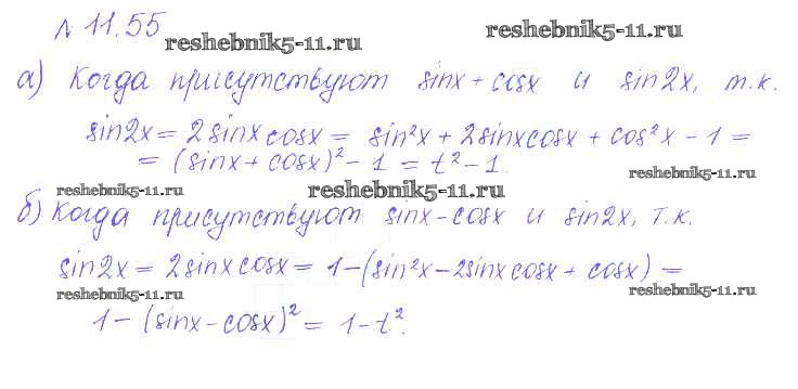 Готовая домашняя работа с ответами по Алгебре за 10 класс Никольский, Потапов, Решетников, Шевкин Учебник МГУ - школе Базовый и углубленный уровень Просвещение 2015 ФГОС - §11. Тригонометрические уравнения и неравенства 55